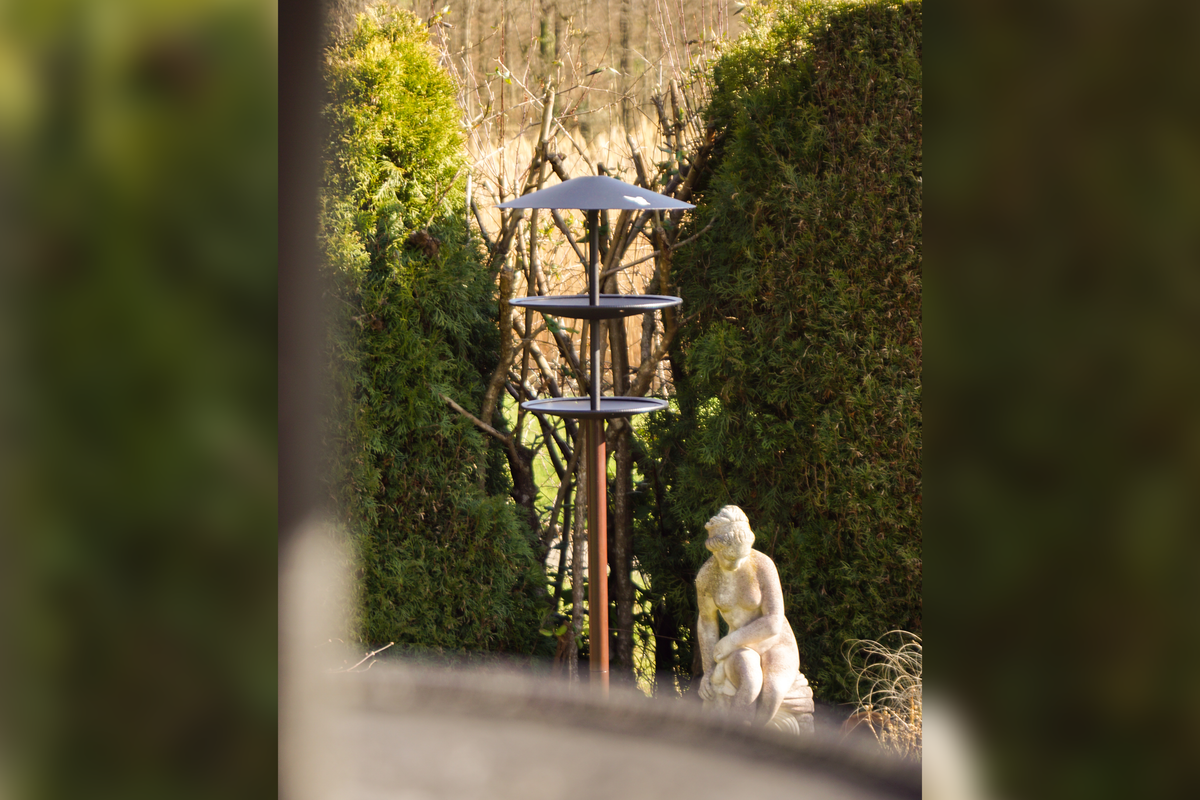 Ein guter Anfang ist die richtige Position. Wähle einen Platz, an dem du das Vogelhaus gut sehen kannst, zum Beispiel vom Wohnzimmer, der Terrasse oder deinem Lieblingssitzplatz im Garten aus. Gleichzeitig sollte die Umgebung für die Vögel sicher sein. Ein wenig Abstand zu dichten Büschen oder Verstecken für Katzen, aber dennoch in der Nähe von Sträuchern oder Bäumen, in die sie schnell fliegen können, ist ideal.
